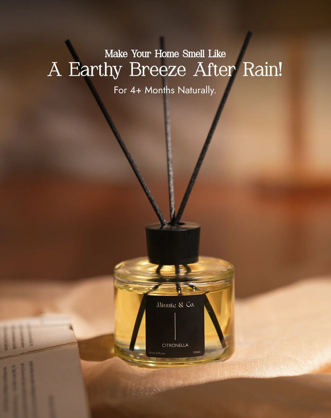 +Electric diffusers can be messy, noisy, and inconvenient, disrupting your decor. The Minute & Co Citronella Reed Diffuser is a natural, portable, and zero effort solution that enhances your space with freshness and joy.