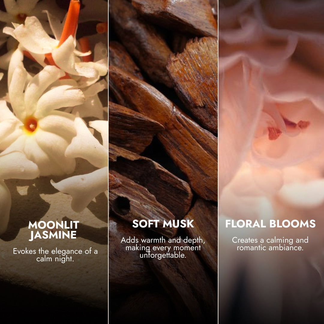 +Noctura (Raat Ki Raani): A magical and sweet floral fragrance inspired by the blooming Night Jasmine. Its aroma is rich, intense, and soothing, evoking a serene and elegant ambiance, perfect for evenings or any peaceful moment.