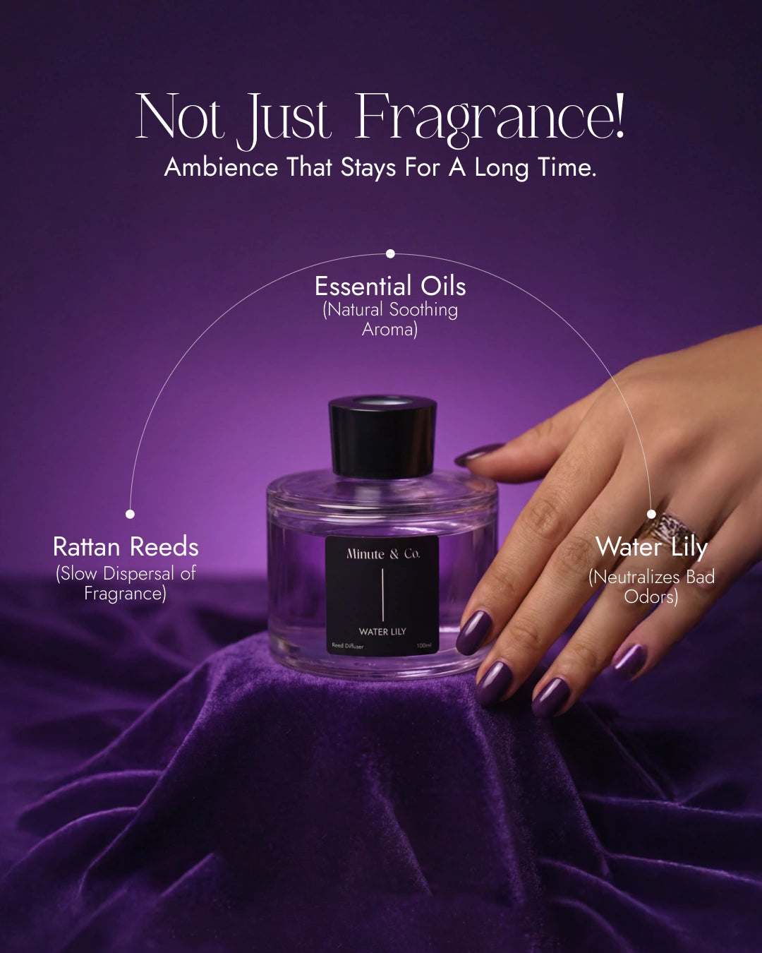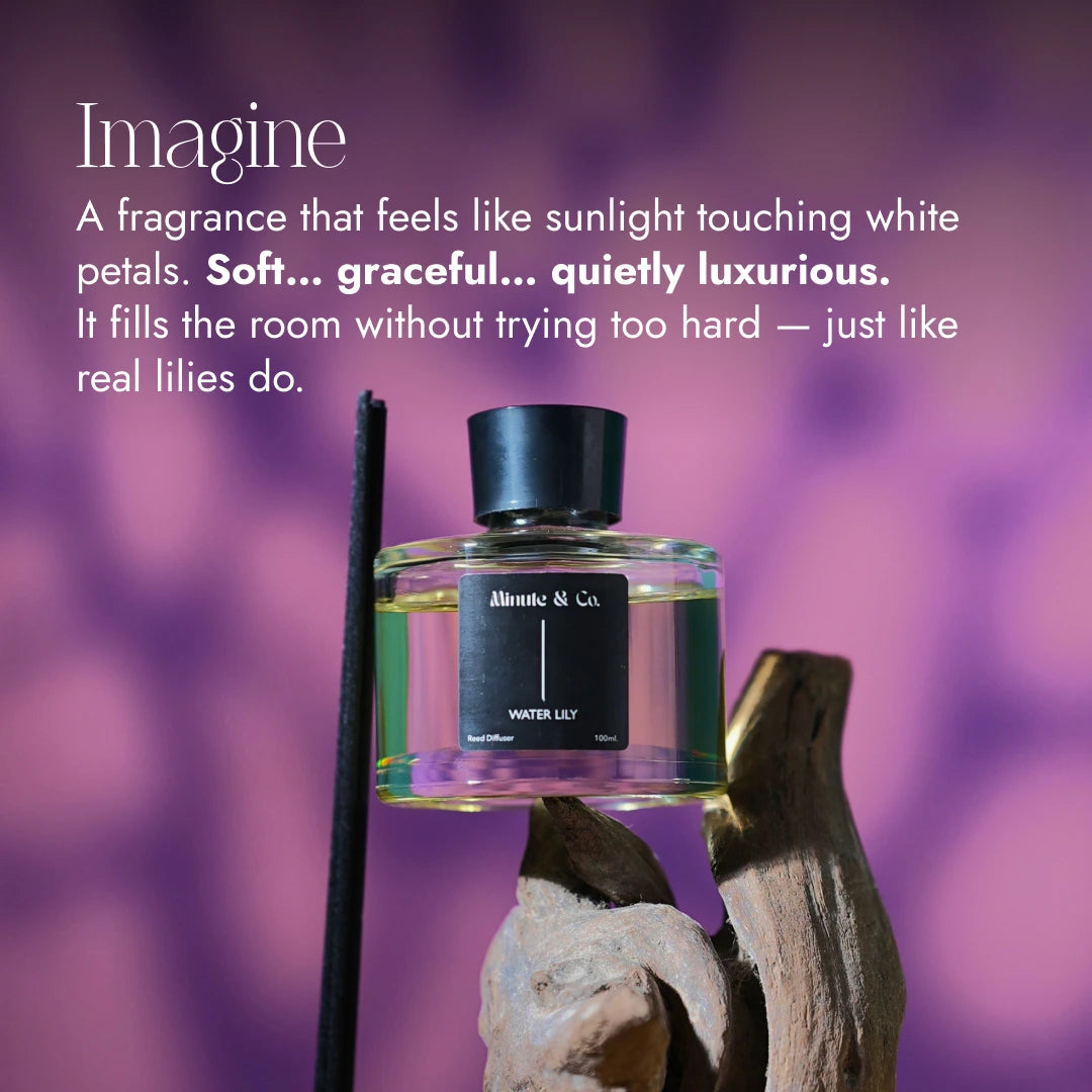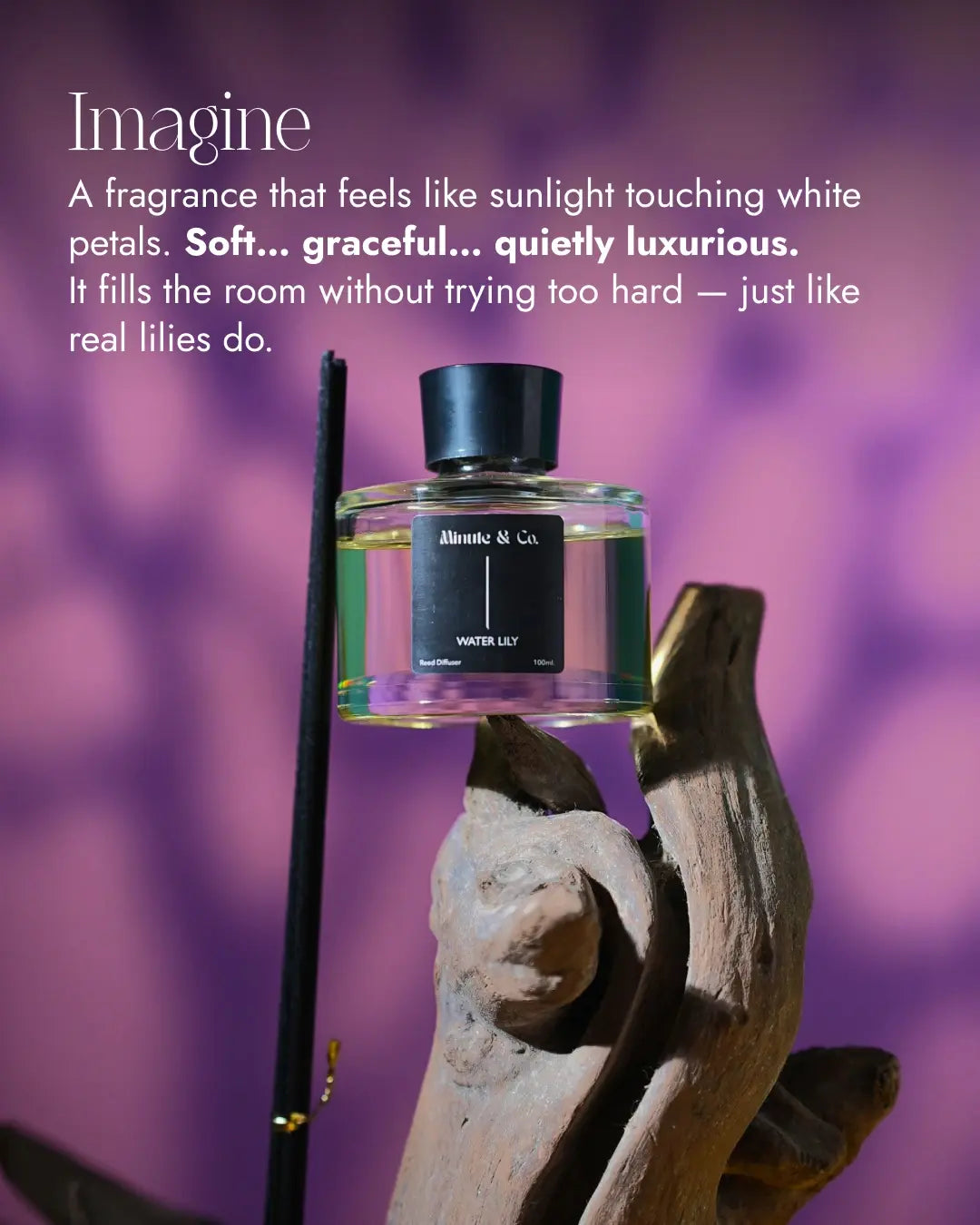 +Electric diffusers can be messy, noisy, and inconvenient, disrupting your decor. The Minute & Co Water lily Reed Diffuser is a natural, portable, and zero effort solution that enhances your space with calm & serenity.