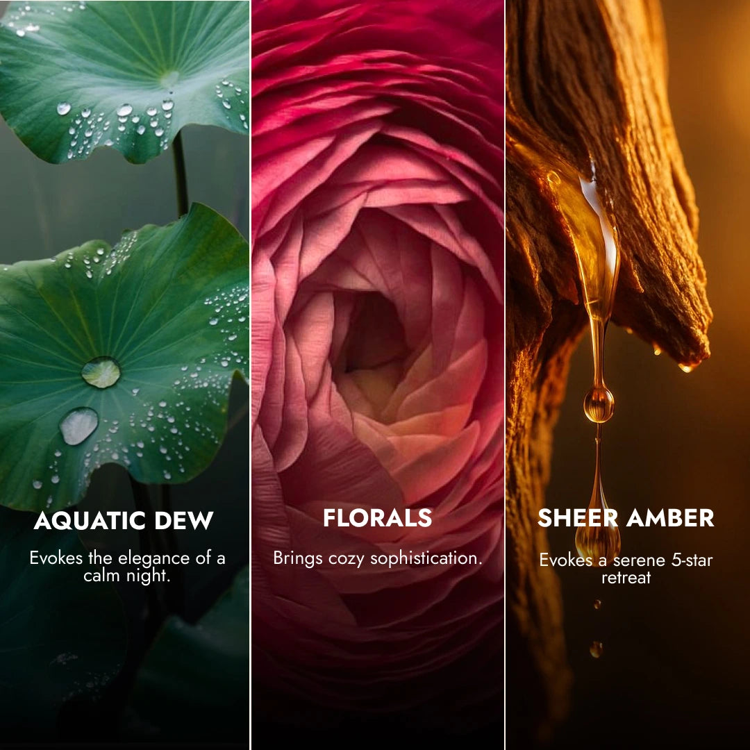 +Water lily: A clean, calming fragrance inspired by still water and soft petals. Gentle aquatic notes blend with delicate florals, creating a serene, refreshing aroma perfect for peaceful living spaces.